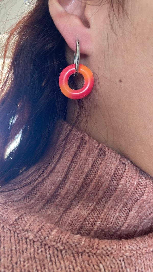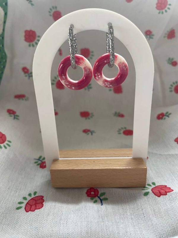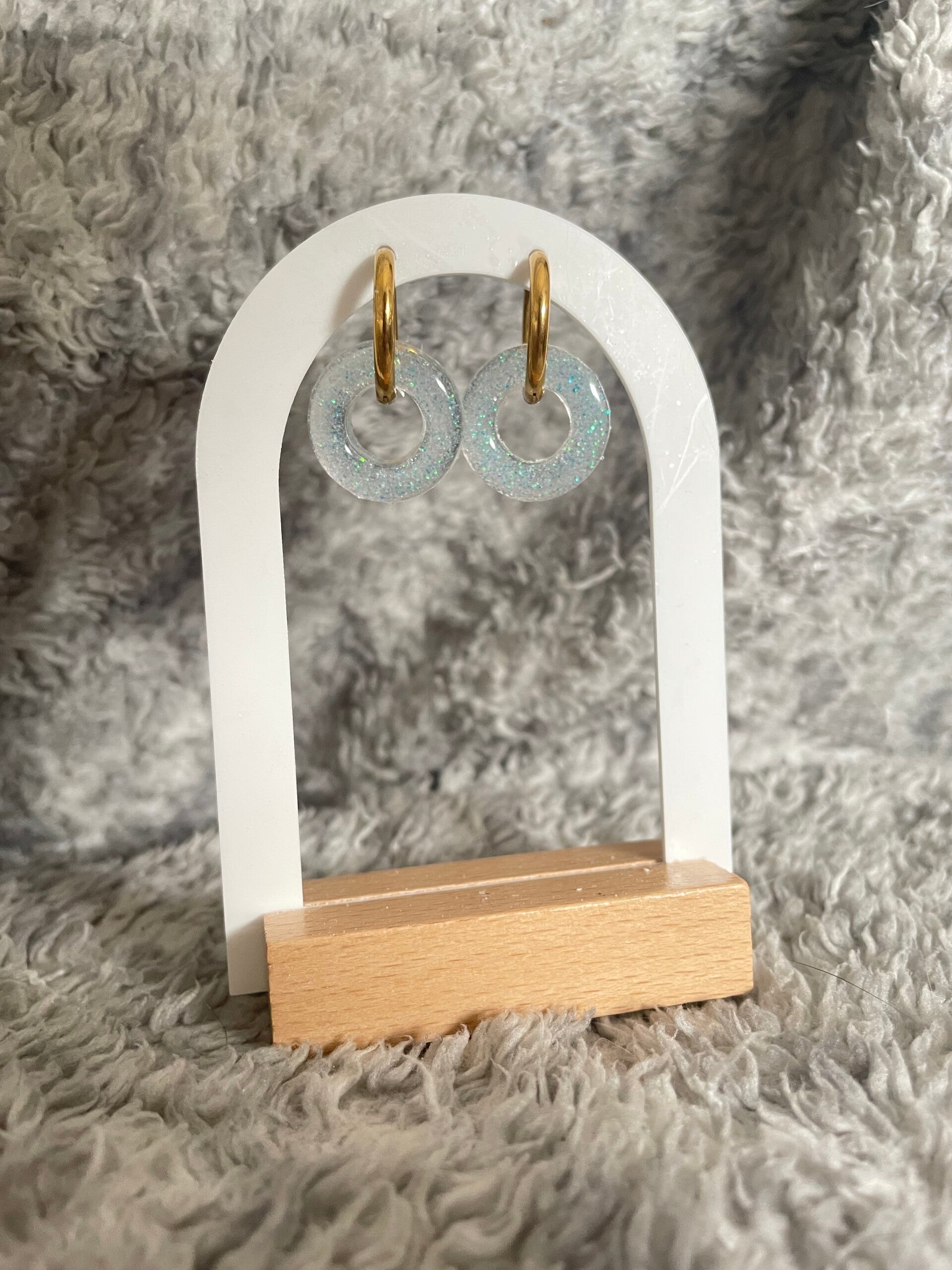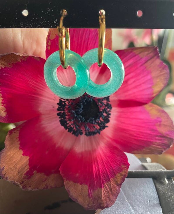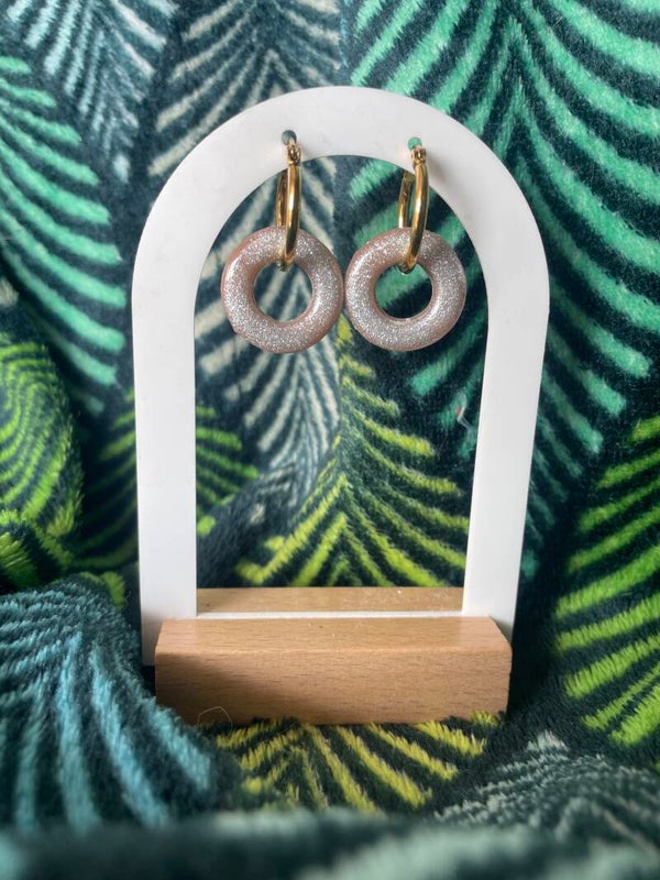 Pampilles en résine en forme de donuts, réalisées à la main avec soin. Légères et élégantes, elles sont parfaites pour créer des boucles d’oreilles originales à associer avec des créoles.